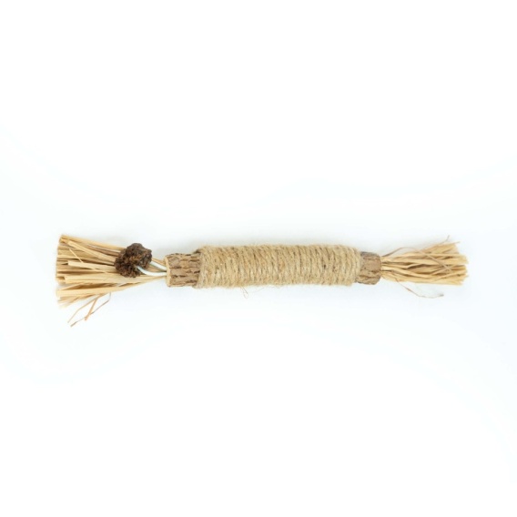 Naturalna zabawka dla kota w postaci jutowej rolki z dodatkiem matatabi. Roślina ta działa na koty pobudzająco i relaksująco, podobnie jak kocimiętka, zachęcając do tarzania się, ocierania i zabawy. Rolka jest trwała, lekka i wygodna do turlania oraz gryzienia. Dzięki swojej strukturze i zawartości matatabi, zapewnia świetną zabawę, jednocześnie wspierając higienę jamy ustnej i redukując stres. Idealna do samodzielnej zabawy i codziennej aktywności kota.