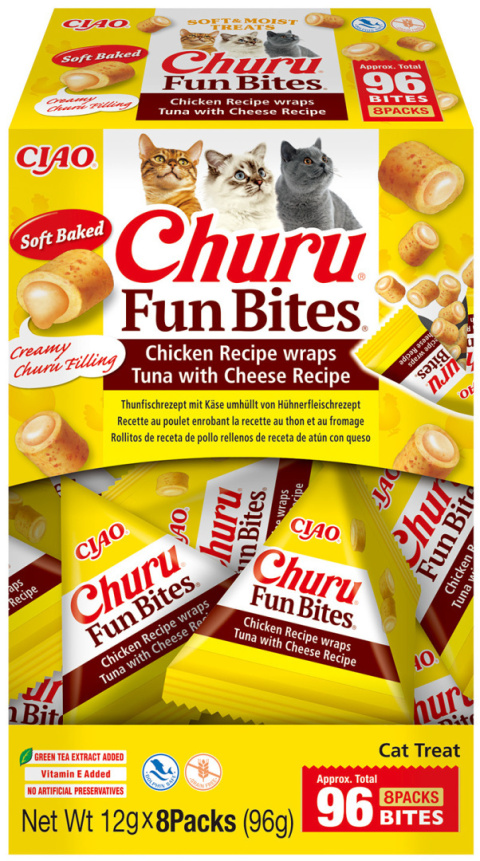 INABA Box Cat Fun Bites z kurczakiem, tuńczykiem i serem 8x12g - przysmaki dla kota 96g