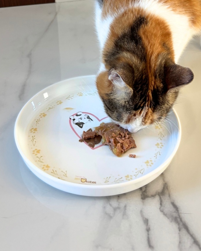 🍛 Duża powierzchnia talerzyka pozwala kotu rozgarniać i przesuwać jedzenie dokładnie tak, jak lubi.